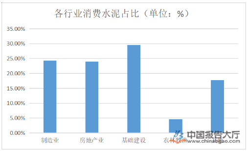 水泥消費(fèi)幾乎出現(xiàn)在所有20個(gè)國(guó)民經(jīng)濟(jì)行業(yè)門類中,任何一個(gè)門類的投資活動(dòng),都有水泥的身影。這其中,與水泥消費(fèi)關(guān)系最密切的有六大門類,分別是制造業(yè),房地產(chǎn)業(yè),水利、環(huán)境和公共設(shè)施管理業(yè),交通運(yùn)輸、倉(cāng)儲(chǔ)和郵政業(yè),農(nóng)、林、牧、漁業(yè),電力、熱力、燃?xì)饧八纳a(chǎn)和供應(yīng)業(yè)。
