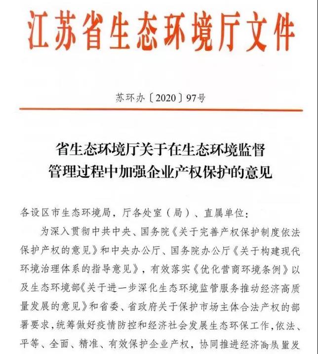 江蘇省生態(tài)環(huán)境廳已發(fā)布了《關(guān)于在生態(tài)環(huán)境監(jiān)督管理中加強(qiáng)企業(yè)產(chǎn)權(quán)保護(hù)的意見(jiàn)》,通過(guò)不干擾守法企業(yè)保護(hù)企業(yè)產(chǎn)權(quán)。免除對(duì)標(biāo)企業(yè),全面禁止環(huán)境保護(hù)"一刀切“。
