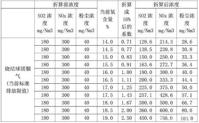 表1排放濃度按不同氧含量折算后的濃度