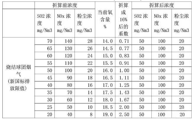 《鋼鐵燒結、球團工業大氣污染物排放標準》(GB28662-2012)修改單規定的基準含氧量,自2017年10月1日起執行。根據編制說明,燒結和球團焙燒煙氣基準含氧量定為16%。則鋼廠燒結和球團實測焙燒煙氣的大氣污染物排放濃度,應換算為16%條件下的排放濃度,并以此作為判定排放是否達標的依據。