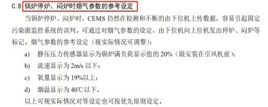 ①有效數據的條件是,CEMS技術指標符合標準要求、驗收合格、污染源存在煙氣排放、CEMS正常運行。固定污染源排放煙氣的條件如何判斷,附錄C.8只是對鍋爐的停爐、燜爐時的參數設定進行了說明,其他行業或工況排放的判定條件未明確,也未指出是否參考鍋爐參數執行。