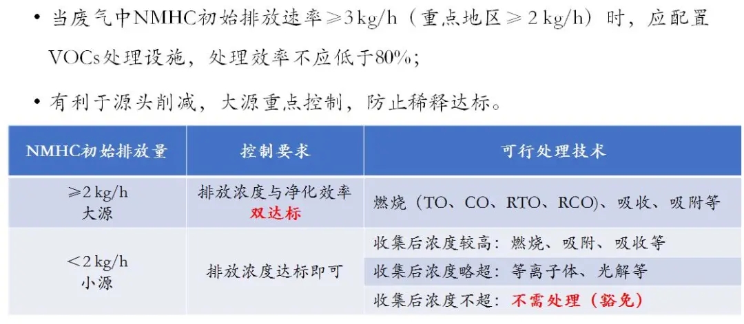 VOCs去除處理:收集的廢氣中NMHC初始排放速率<2 kg/h時,收集后濃度不超可豁免VOCs處理,濃度達標即可。