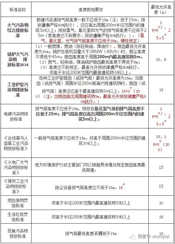 二、各大氣排放標準對排氣筒高度的規定