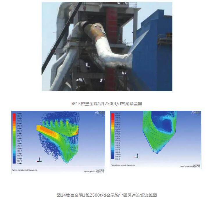 研發(fā)平臺(tái)應(yīng)用于產(chǎn)品設(shè)計(jì)的同時(shí),還應(yīng)用于生產(chǎn),快速解決了很多除塵器及系統(tǒng)的實(shí)際問(wèn)題。袋除塵器運(yùn)行早期出現(xiàn)破袋問(wèn)題。破袋原因很多很復(fù)雜,有結(jié)構(gòu)設(shè)計(jì)不合理問(wèn)題,也有除塵器前后工藝接入的進(jìn)出風(fēng)管路不合理問(wèn)題。利用該平臺(tái),我們解決了許多早期破袋問(wèn)題。例如,2009年金隅集團(tuán)收購(gòu)贊皇水泥一條未建設(shè)完成的2500t/d水泥生產(chǎn)線后,直接委托我們將窯尾電除塵器改為袋除塵器,我們按常規(guī)在短期內(nèi)進(jìn)行了改造。生產(chǎn)線剛開始投入運(yùn)行時(shí)效果良好,但約3個(gè)月后出現(xiàn)排放超標(biāo)。我們檢查發(fā)現(xiàn),有3條破袋產(chǎn)生,且集中在后部一個(gè)室內(nèi),我們僅進(jìn)行了封堵處理。